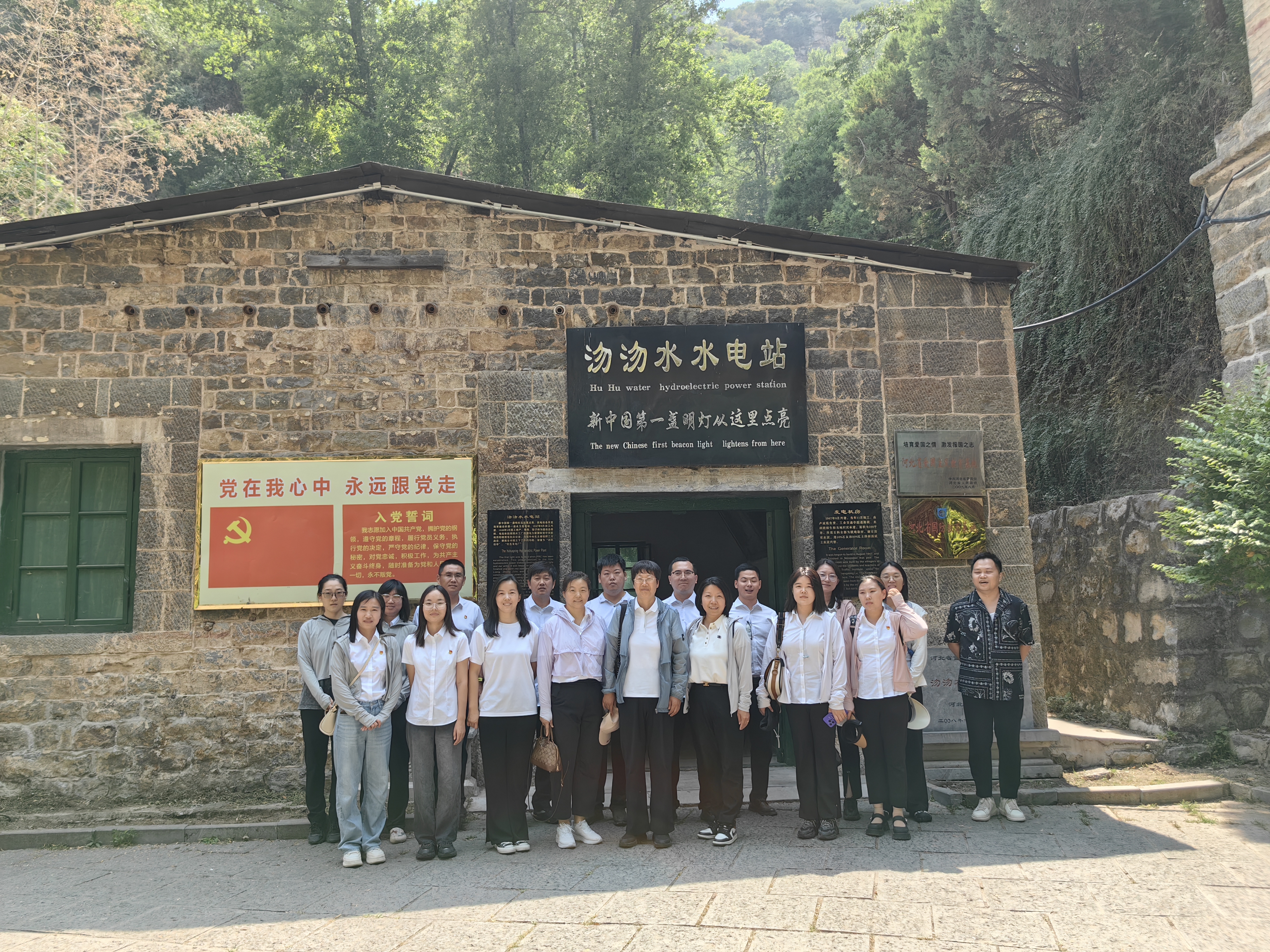 在沕沕水,觀摩了我黨我軍自己動(dòng)手勘察設(shè)計(jì)興建的第一座水力發(fā)電站——沕沕水發(fā)電站,被譽(yù)為“邊區(qū)創(chuàng)舉”“紅色發(fā)電廠”。神奇的電流從這里源源不斷地輸送到西柏坡和周邊的兵工廠,點(diǎn)亮了“新中國(guó)從這里走來(lái)”的第一盞明燈,提高了兵工廠生產(chǎn)能力,為解放戰(zhàn)爭(zhēng)勝利和新中國(guó)成立做出了不可磨滅的貢獻(xiàn)。大家從發(fā)電廠從建設(shè)到建成的過(guò)程中學(xué)習(xí)了戒驕戒躁、謙虛謹(jǐn)慎、艱苦奮斗的創(chuàng)業(yè)精神,被革命前輩敢于勝利、永不停步的徹底革命精神所感動(dòng)。
